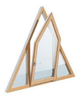 Треугольные окна могут быть глухими (без открывания), распашными (поворотными, поворотно-откидными) или откидными (фрамужные) — все зависит от размеров и ваших пожеланий. Окна треугольной формы оснащают либо откидной, либо поворотной фурнитурой, располагая петли напротив острого угла.