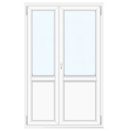 Дверь пластиковая, входная, двухстворчатая. Профиль Steko 4S (s400) (четырехкамерный). Стеклопакет однокамерный, энергосберегающий с защитой от солнца. Низ двери заполнен сэндвич-панелью.